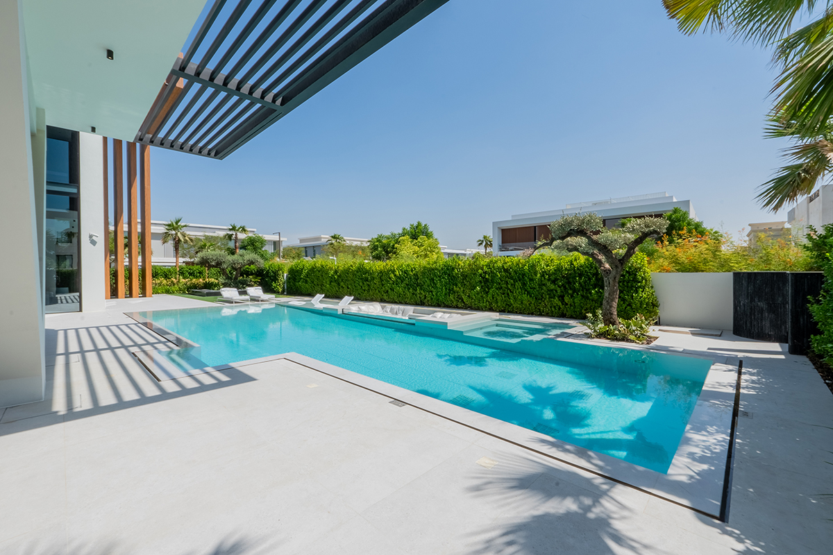 Set within the prestigious Fairway Villas cluster of Dubai Hills Estate, this 13,397 sq.ft. villa features five ensuite bedrooms, a private gym, home theater, and swimming pool, all designed to complement the spacious living areas and floor-to-ceiling windows that fill the interiors with natural light.